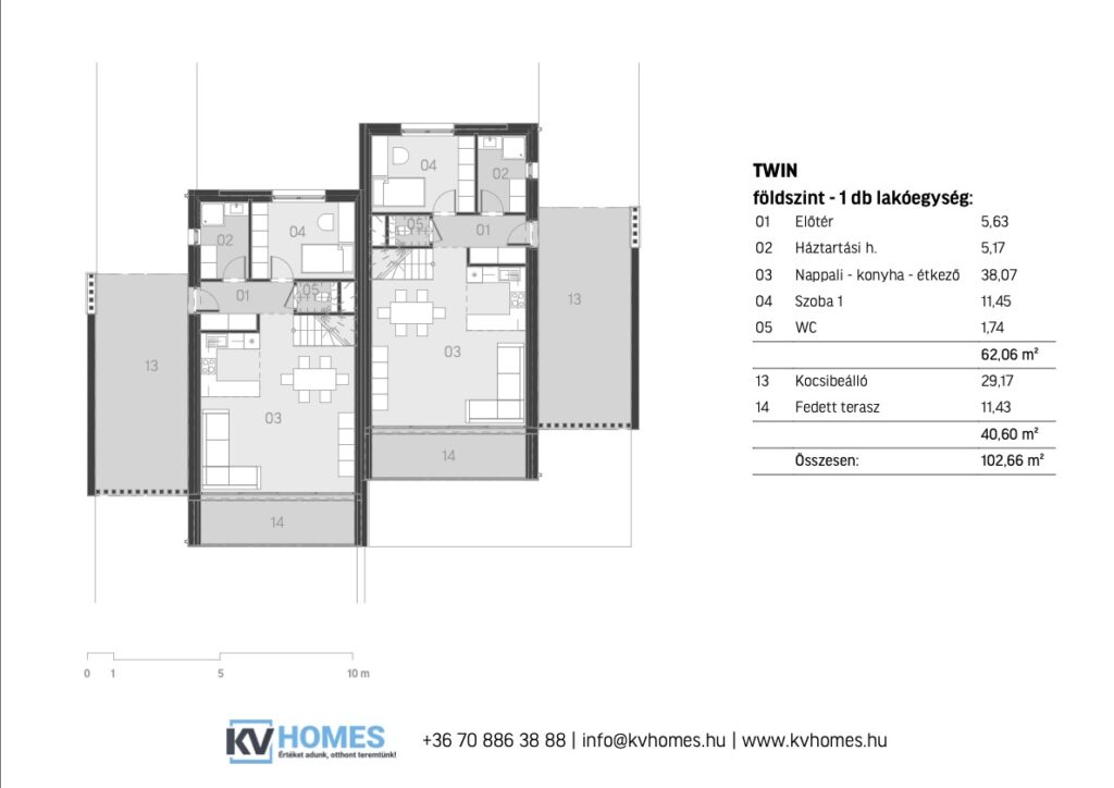 | Parkolás | 1db szabvány méretű Saját, térkő burkolatú gépkocsi beálló minden lakáshoz |